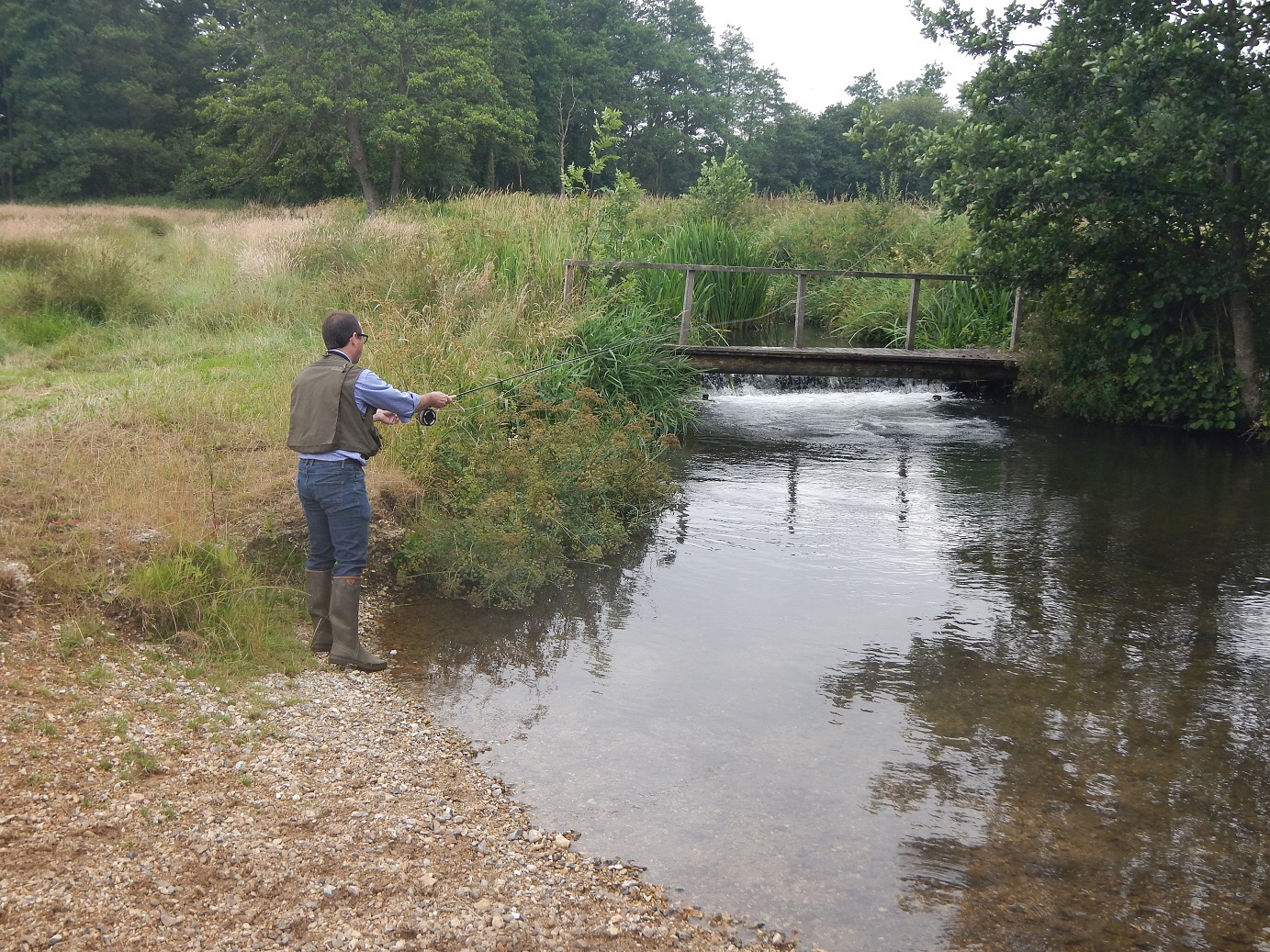 We started on a lake near Theale and a few stocked trout succumbed to Charles while the rest of us struggled. Instead we decided to explore the nearby river Pang. This tiny Berkshire chalk stream is a favourite of Richard’s and he was keen to see if we could tempt some wild fish before we stopped for lunch. Unfortunately the river was just too low to make fishing viable but I’m sure the guys will be back there once the flows pick up as the Pang holds some lovely grayling and some beautifully marked brownies.