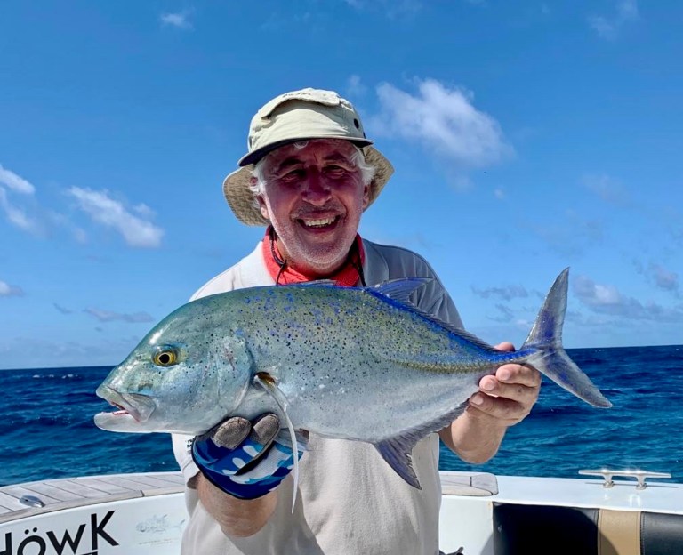 Unfortunately, whilst the weather was warm and sunny as the wet season came to an end, the wind remained brisk and on a couple of occasions it was simply too uncomfortable to cast safely from a pitching deck. The GTs can be caught in the calmer water inside the atoll but the most productive areas tend to be on the ocean side of surrounding reefs. We caught fish every day including some fine snapper and coral trout and some lovely bluefin trevally. The GTs made the occasional appearance, I had a couple of modest fish to 20lbs as did Adrian. Mike landed a 50lbs plus beauty and sadly, when Malcolm finally hooked his brute of a GT and got it close to the boat, it made one final dive and severed the 130lbs leader on the rocks. He was not the only one to lose fish but that’s GT fishing. Hours of exertion in the blazing sun and moments of madness and mayhem followed by agony or ecstasy. I reckon I’ve a couple more of these trips left in me but after that my gear will be on eBay as these fish are probably best left alone once you hit the wrong side of 70.