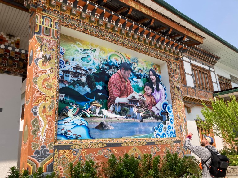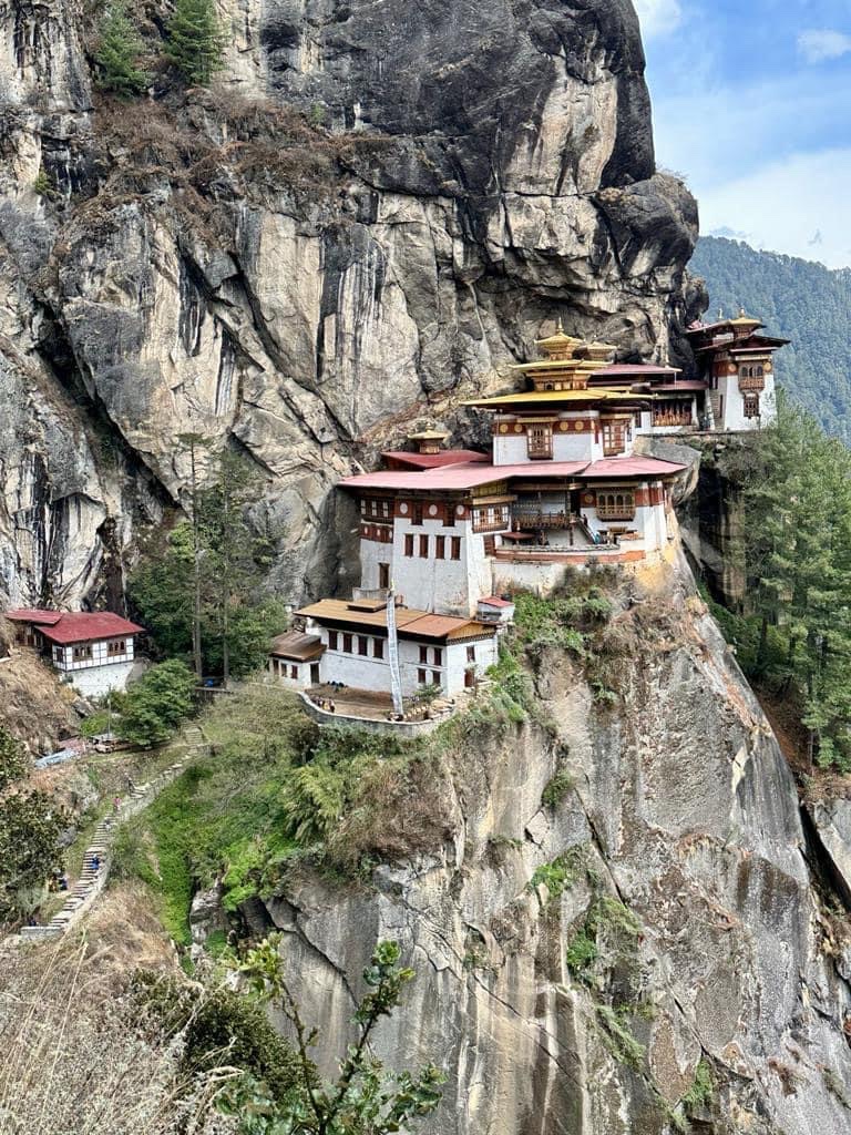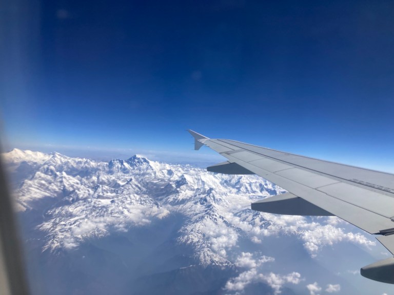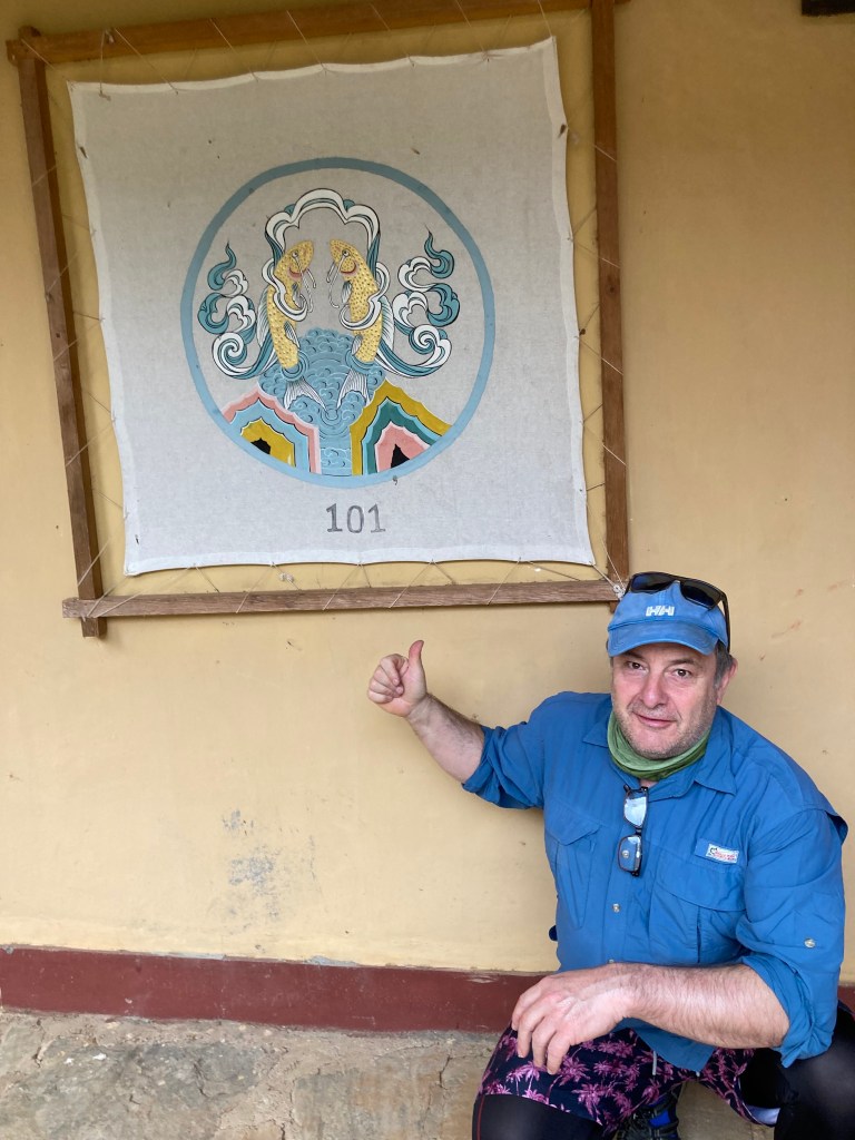 We quickly kissed off our plans for April 2020 and Chris did a sterling job in persuading the airlines to refund our fares. 2021 was out as Bhutan remained under pretty strict lockdown to foreigners and it wasn’t until April 2023 that we were finally able to board our flights to Kathmandu and then on to Paro. Apparently this last leg would not only give us a dramatic view of Everest and the High Himalayas on the way in but also some buttock clenching moments as the pilot swoops down through a number of tight mountain-lined S bends in order to access the only piece of flat land in the entire kingdom. Excitable You Tube videos describe this as the most dangerous approach to any international airport in the world and whilst it was certainly not one for nervous passengers it was actually rather fun and we never felt at risk.