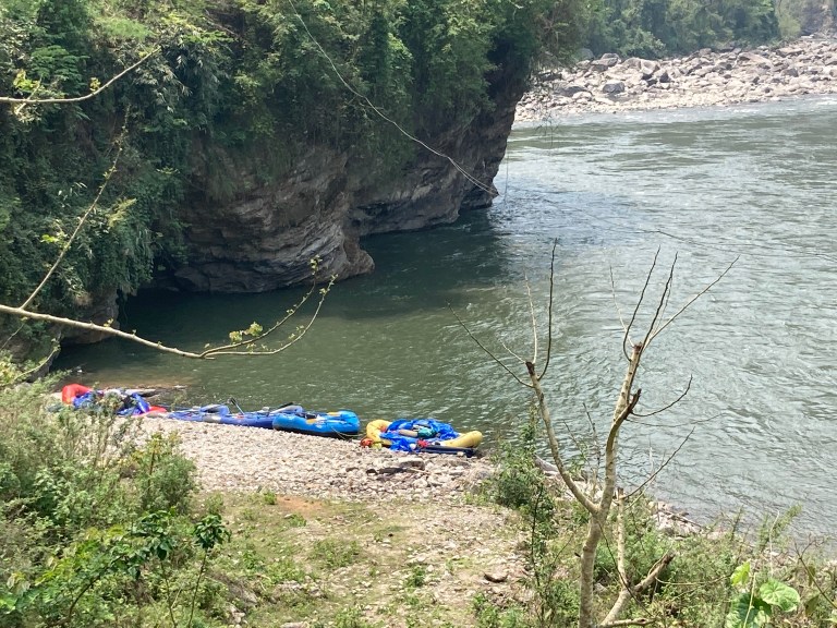 Our river, the Sun Kosh, was still two days journey away over high mountain passes littered with rock falls that require major road reconstruction after almost every monsoon season. We spent the first night in a traditional Bhutanese ‘eco lodge’ where the hosts offered us a warm welcome, our last comfortable bed for a week, a distinctly ordinary curry and some undrinkable local hooch. We quickly discovered that Bhutan is no place for those expecting fine dining but luckily Chris had employed some superb camp staff who fed us well by the river despite having only the most basic of facilities with which to work.